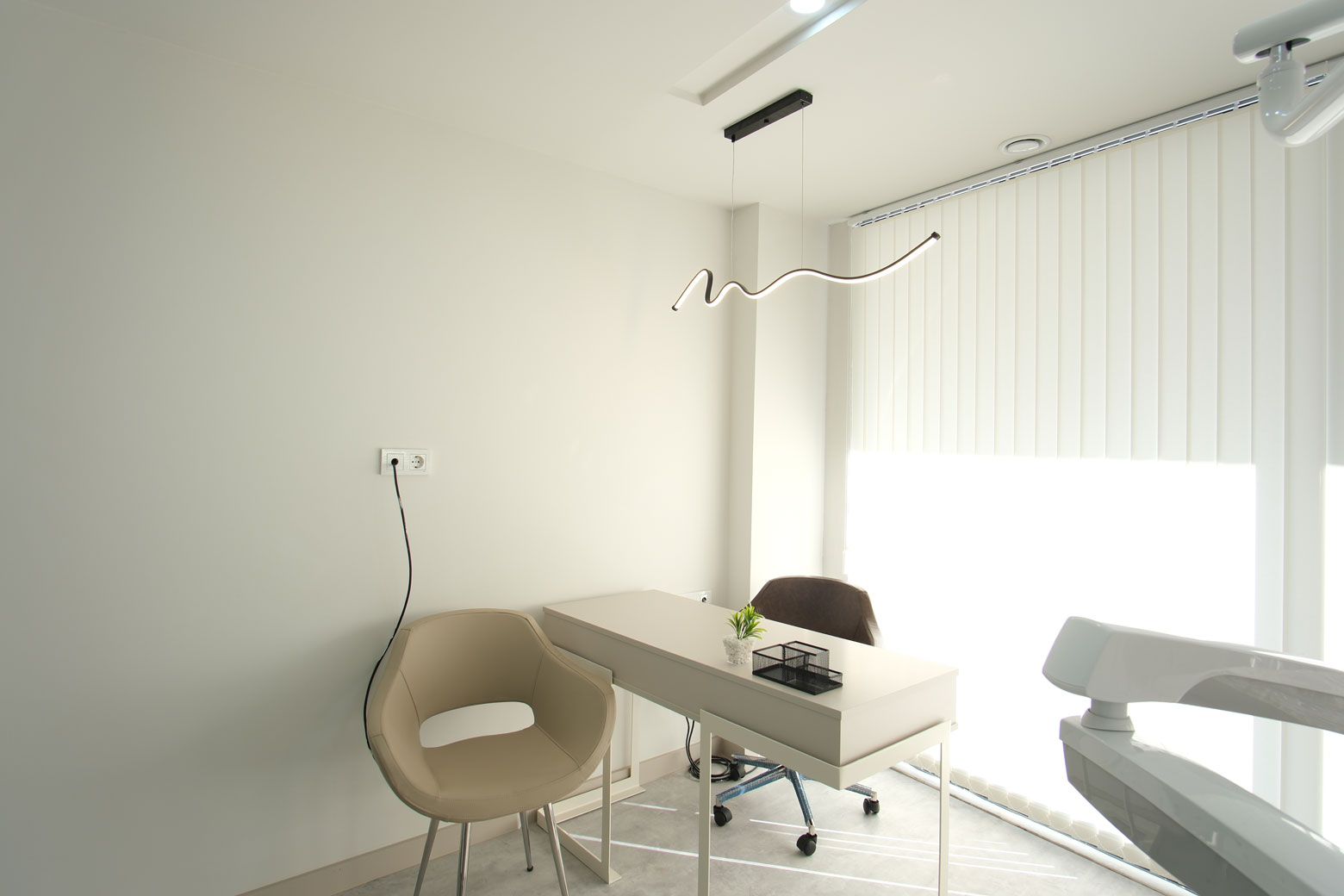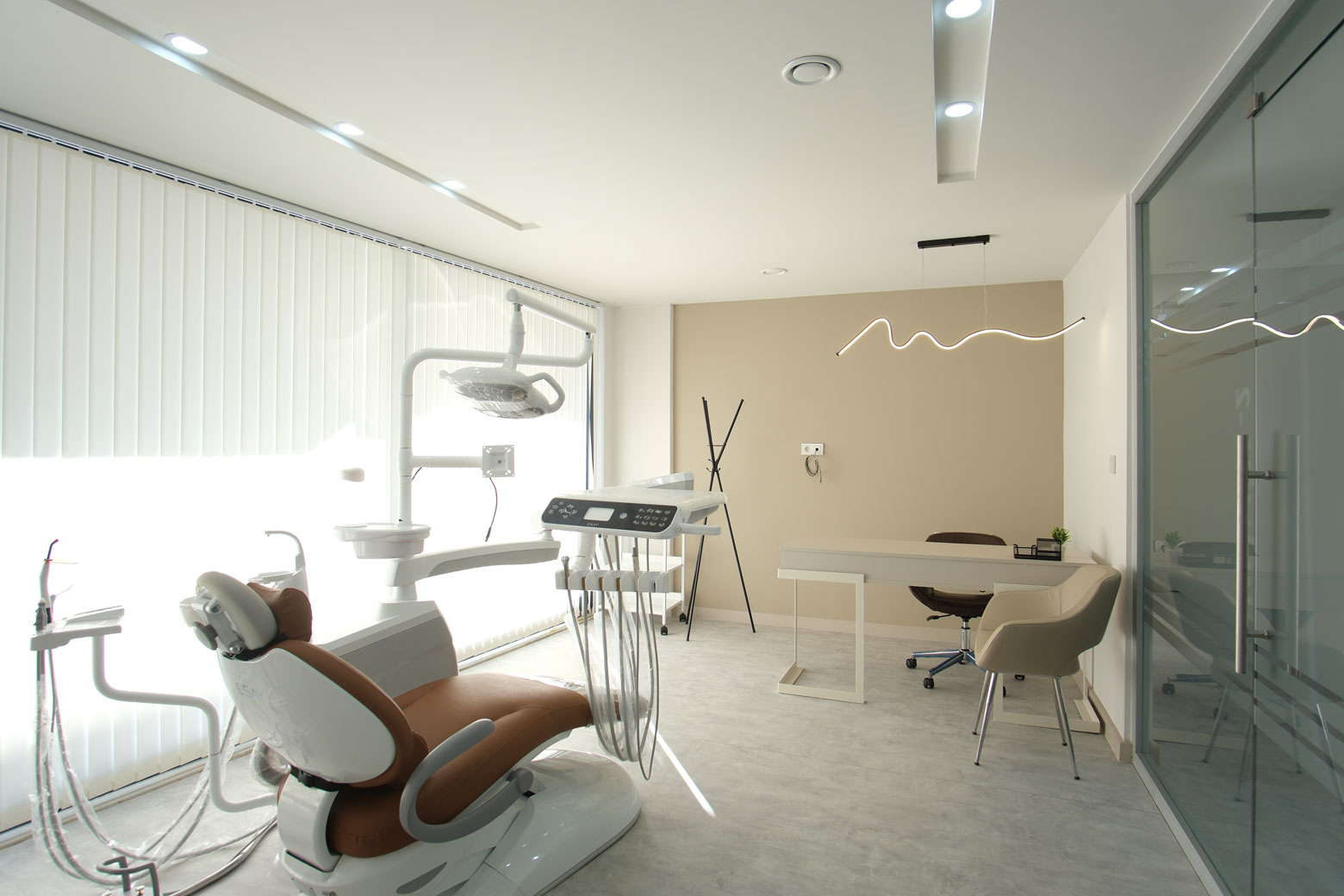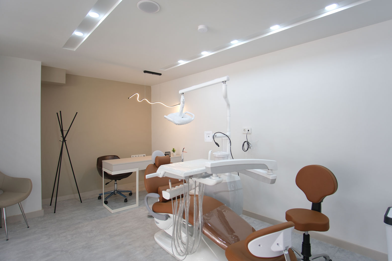 Özel Üretim Mobilyalar: Mekanın ölçülerine ve diş kliniği tasarımına özel olarak üretilen mobilyalarla alan verimliliği sağlanmıştır.