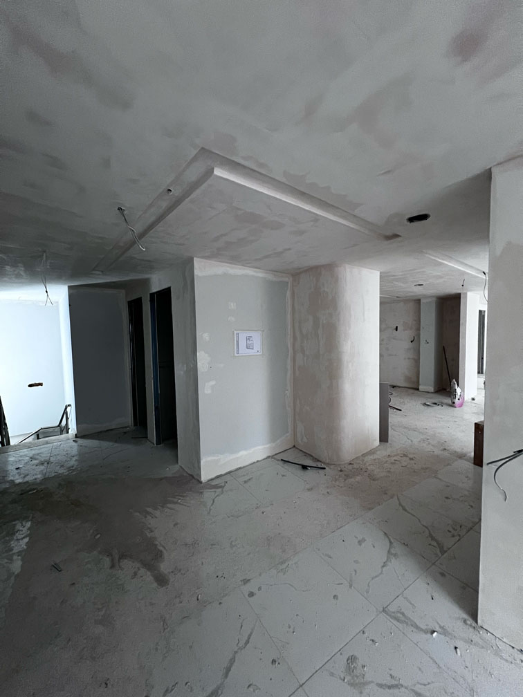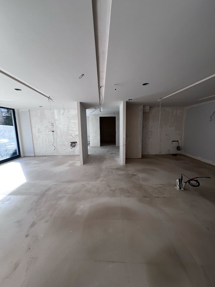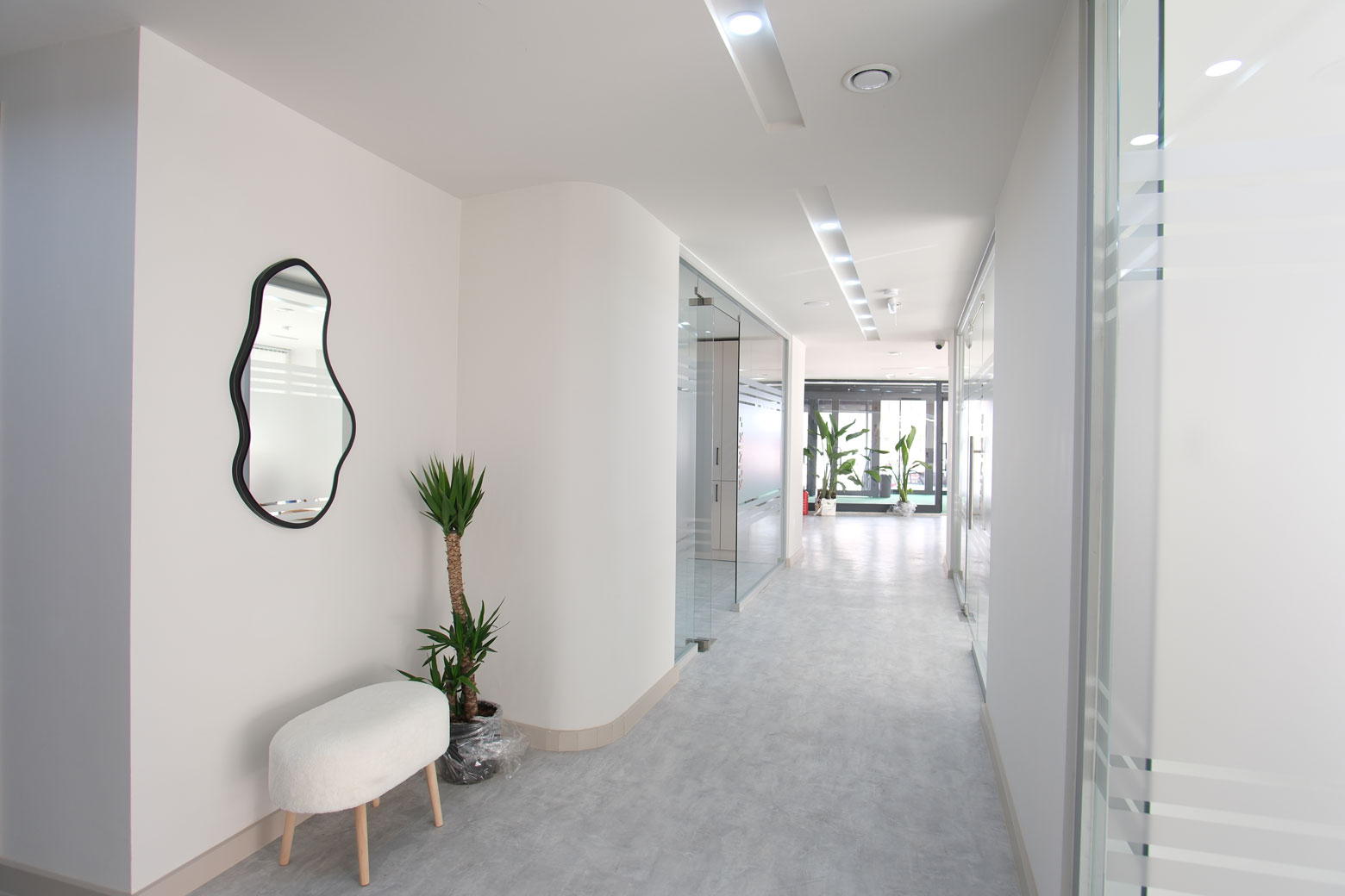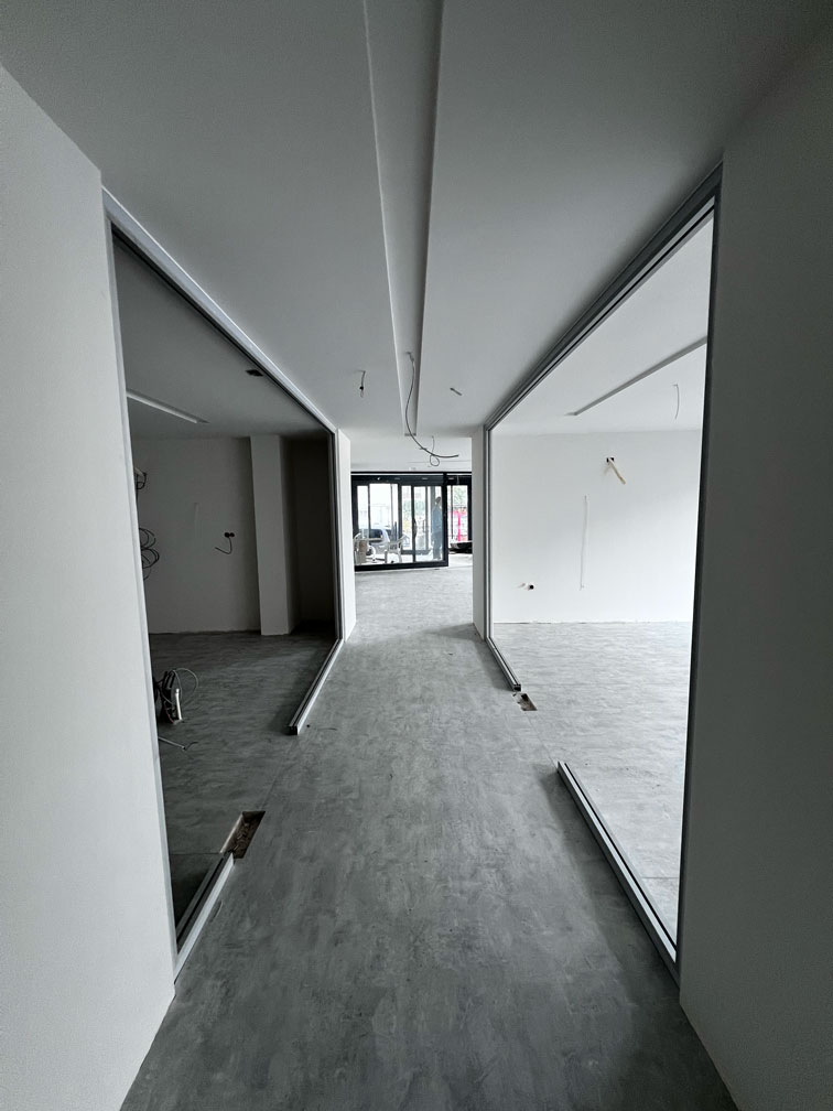 Mevcut seramik zemin üzerine uyguladığımız mikrobeton (microcement) zemin kaplama, kliniğe hijyenik, derzsiz ve modern bir atmosfer kazandırmıştır. Bu dönüşümde Ramel Dental, hastalarına kapıdan girdiği andan itibaren kurumsal ve güven veren bir deneyim sunacak şekilde tasarlanmıştır.