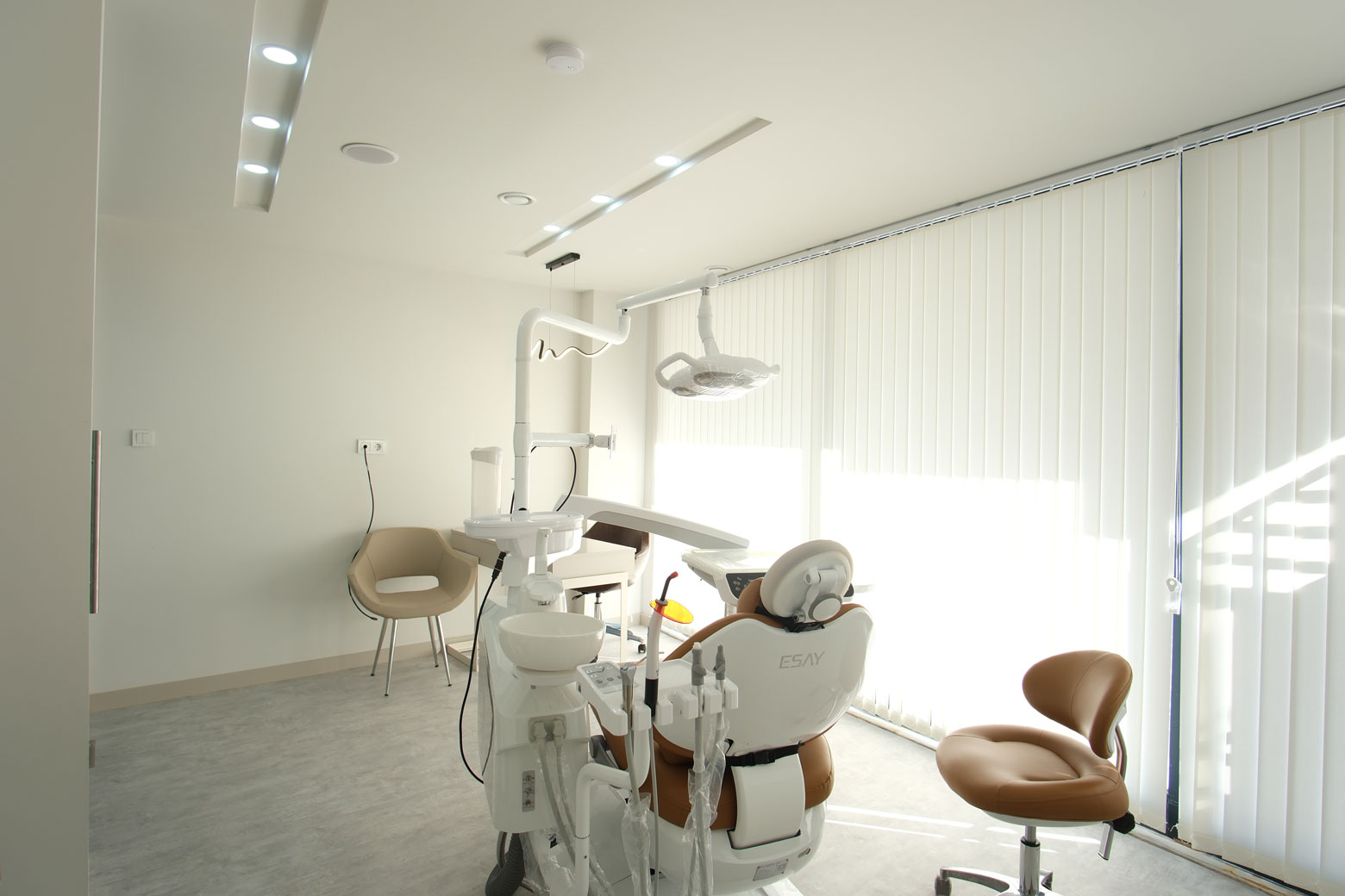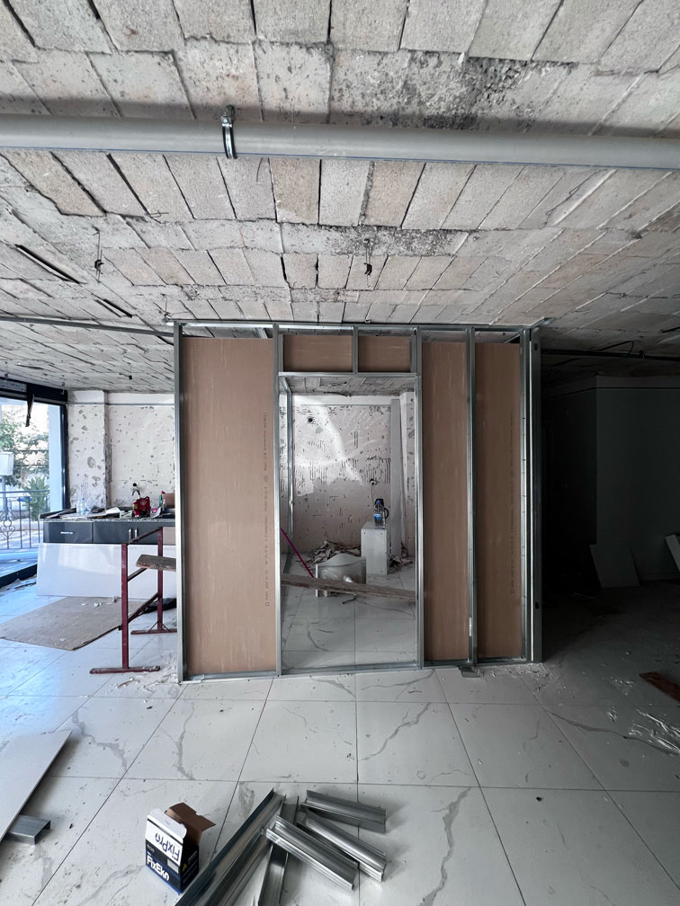 Proje başlangıcında atıl durumda ve eski bir market yapısında olan mekan, diş kliniği mimarisi standartlarına göre sıfırdan ele alınmıştır. Klinik dekorasyonu sürecinde alçıpan duvarlarla yeni bir planlama yapılarak mekanın işlevselliği en üst düzeye çıkarılmıştır.