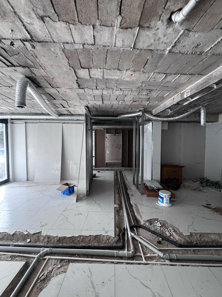 Anahtar teslim diş kliniği inşaatı sadece görsel değil, ciddi bir teknik altyapı uzmanlığı gerektirir. Ramel Dental projesinde tüm mekanik ve elektrik altyapısı sıfırdan kurgulanmıştır: