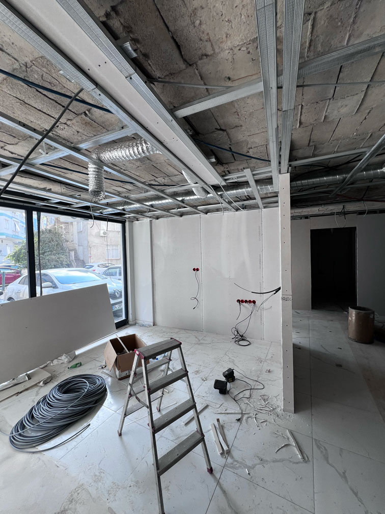 Loft Bau olarak, sağlık sektörünün ihtiyaç duyduğu yüksek standartları estetikle buluşturmaya devam ediyoruz. Sadece 60 gün gibi rekor bir sürede tamamladığımız Ramel Dental projesi, boş bir ticari alanın tam donanımlı, yönetmeliklere uygun ve modern bir sağlık merkezine dönüşüm hikayesidir.